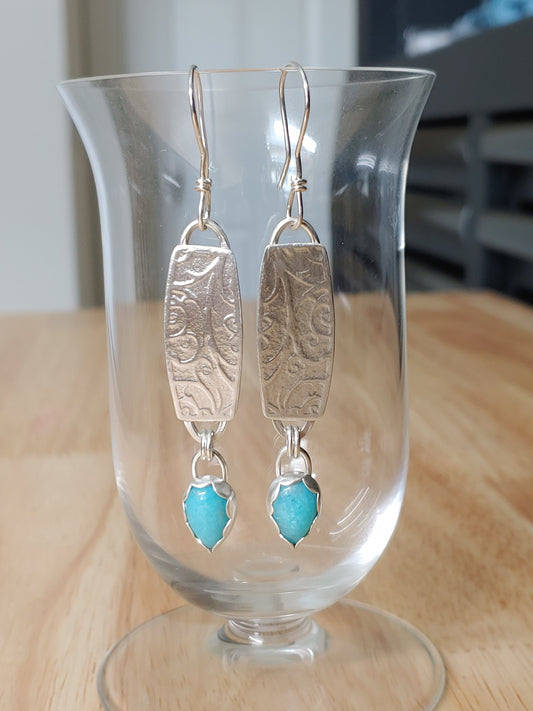 sterling silver hammered double hoop & 7 dwarfs turquoise earrings