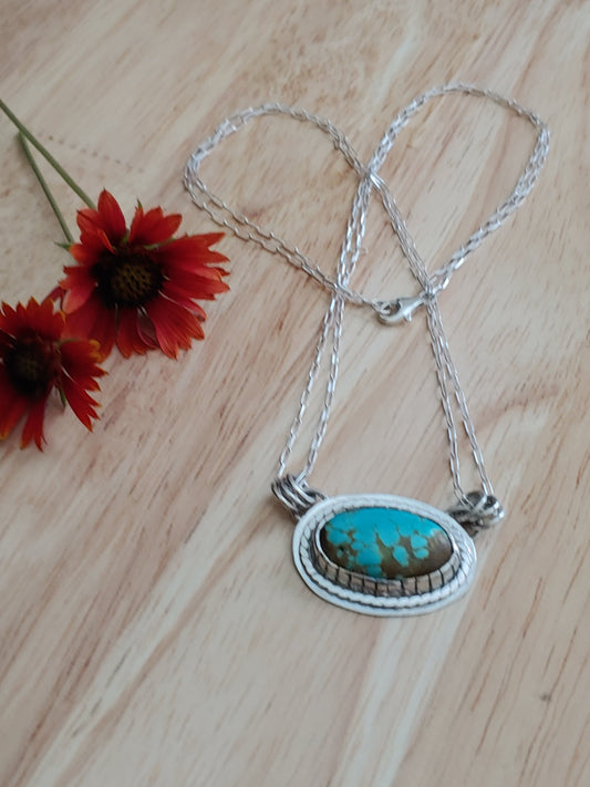 sterling silver no. 8 turquoise castellated bezel necklace